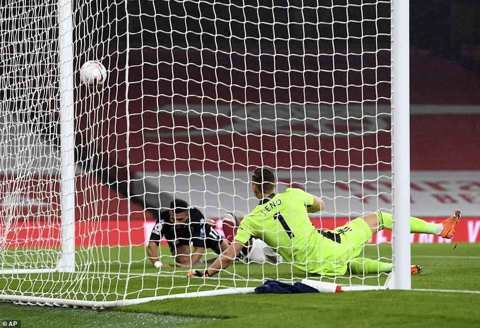 Saka vô tình đốt đền giúp đội khách mở điểm. ẢNH: AP