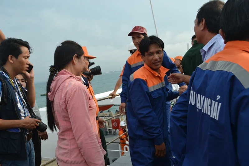 Chiều cùng ngày, tàu SAR 412 đã cập cầu cảng Trung tâm Phối hợp tìm kiếm cứu nạn hàng hải khu vực II tại Đà Nẵng bàn giao 34 ngư dân gặp nạn cho chính quyền địa phương. Ông Nguyễn Anh Vũ, Tổng Giám đốc Trung tâm Phối hợp tìm kiếm, cứu nạn hàng hải Việt Nam, đã có mặt trao quà của Ủy ban Quốc gia tìm kiếm cứu nạn và Cục Hàng hải Việt Nam đến 34 thuyền viên gặp nạn. Ông Vũ cũng khẳng định lực lượng tìm kiếm cứu nạn hàng hải luôn sát cánh bên cạnh bà con ngư dân trong mọi điều kiện, hoàn cảnh, ở bất cứ nơi nào trên vùng biển Việt Nam.