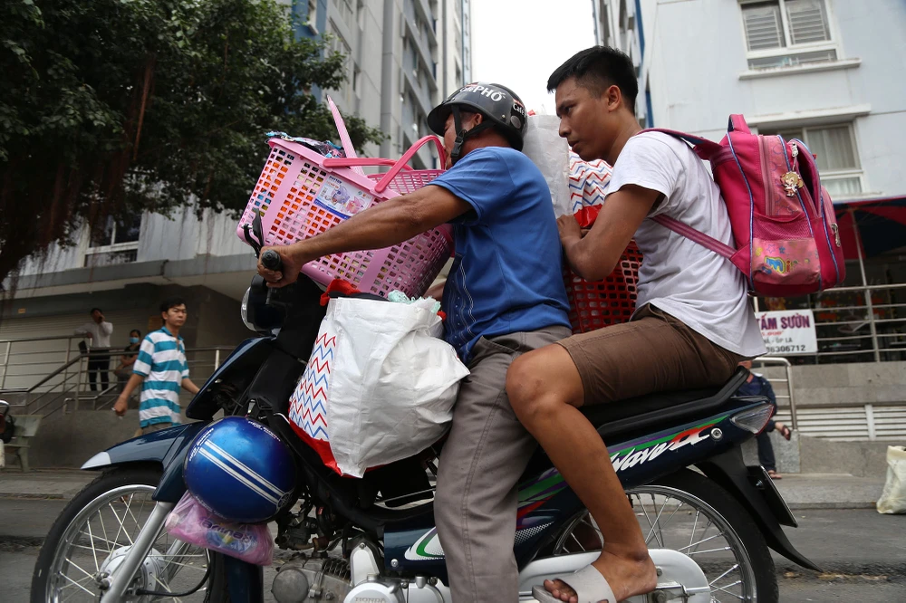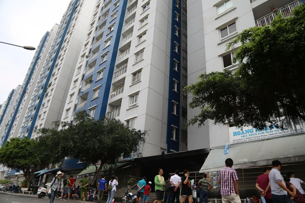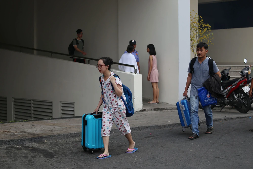 Nhiều người dân vẫn chưa hết bàng hoàng và đang vội vã vận chuyển đồ đạc ra khỏi chung cư.