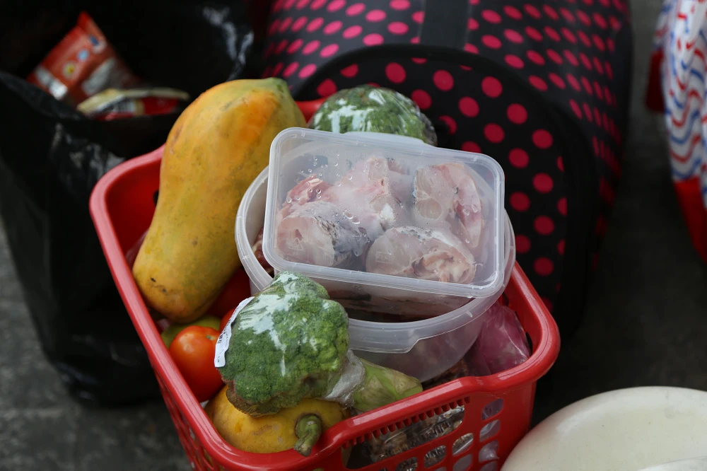 Đồ đạc, thức ăn được người dân dọn ra khỏi chung cư.