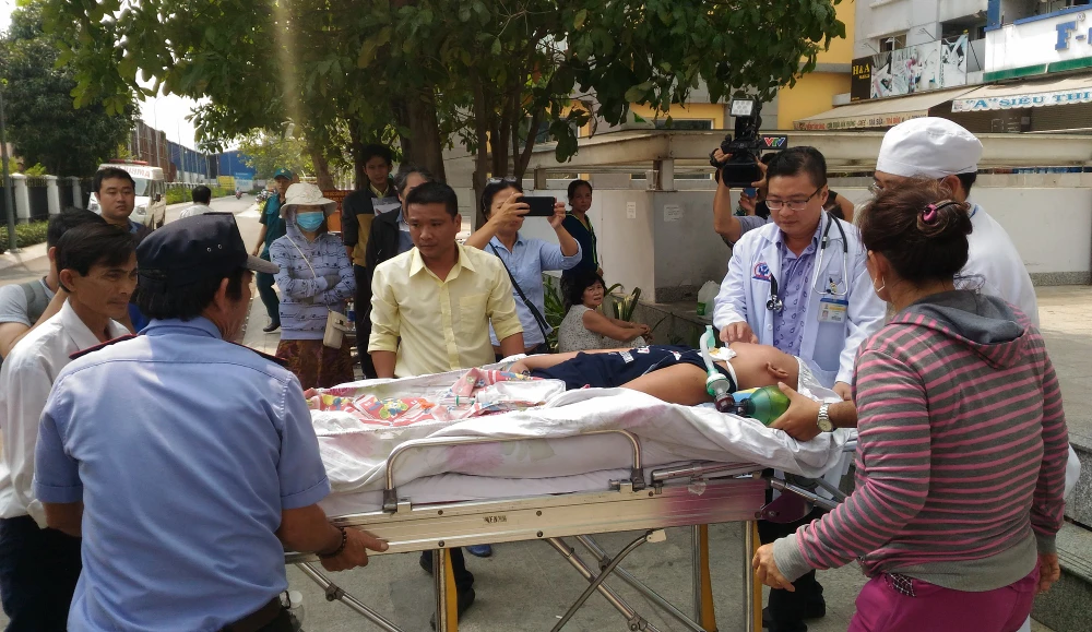 Một gia đình có người bệnh lo sợ nguy hiểm nên phải gọi xe cấp cứu đưa vào bệnh viện.