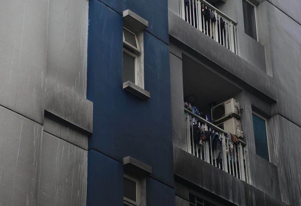 Các bức tường bị ám khói đen xì từ vụ cháy giữa đêm.