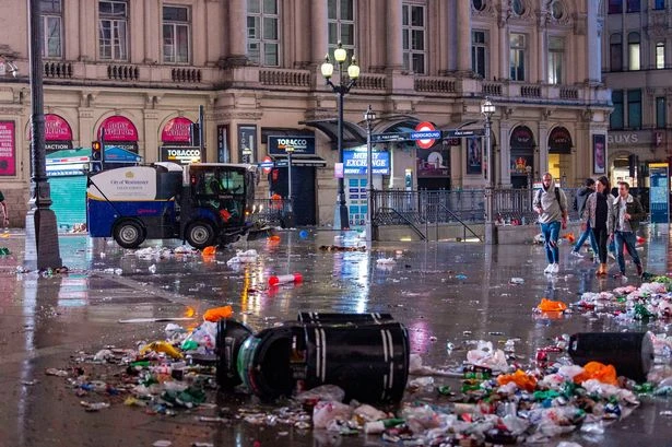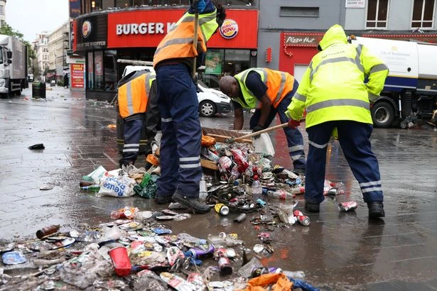 Lực lượng lao công vất vả dọn rác. ẢNH: MIRROR