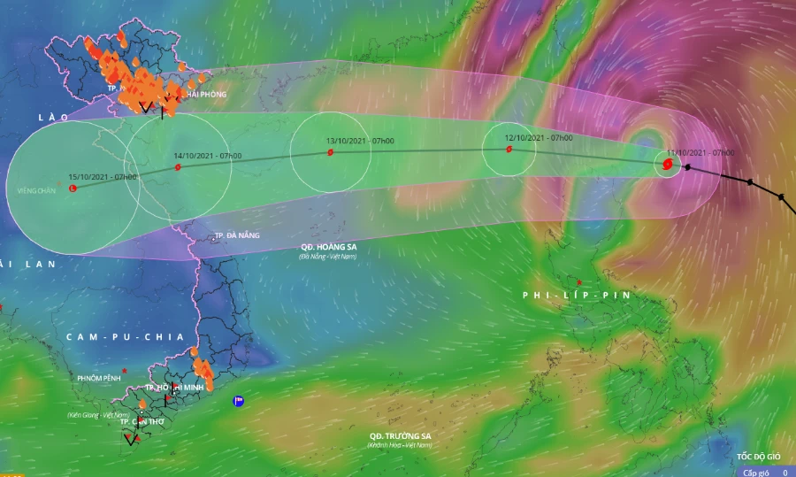 Dự báo trong 24 giờ tới, bão di chuyển nhanh với tốc độ 20-25 km/giờ theo hướng tây tây bắc. Khoảng đêm nay, rạng sáng ngày 12-10, bão đi vào Biển Đông và trở thành cơn bão số 8 năm 2021.
