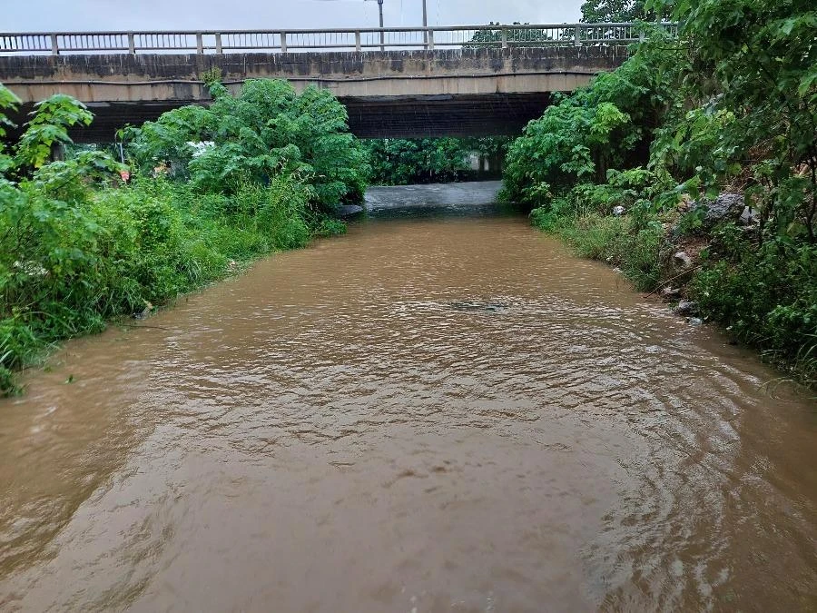 Mưa gây ngập lụt một số vùng trũng thấp ở Hà Nội. Ảnh: AH