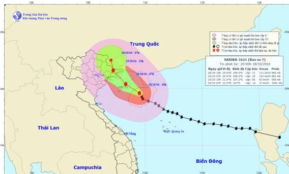 Đến 19 giờ ngày 20-10, vị trí tâm bão ở vào khoảng 19,1 độ Vĩ Bắc; 118,1 độ Kinh Đông, cách quần đảo Hoàng Sa khoảng 690km về phía Đông Đông Bắc. Sức gió mạnh nhất ở vùng gần tâm bão mạnh cấp 14 (150-165km/giờ), giật cấp 17.