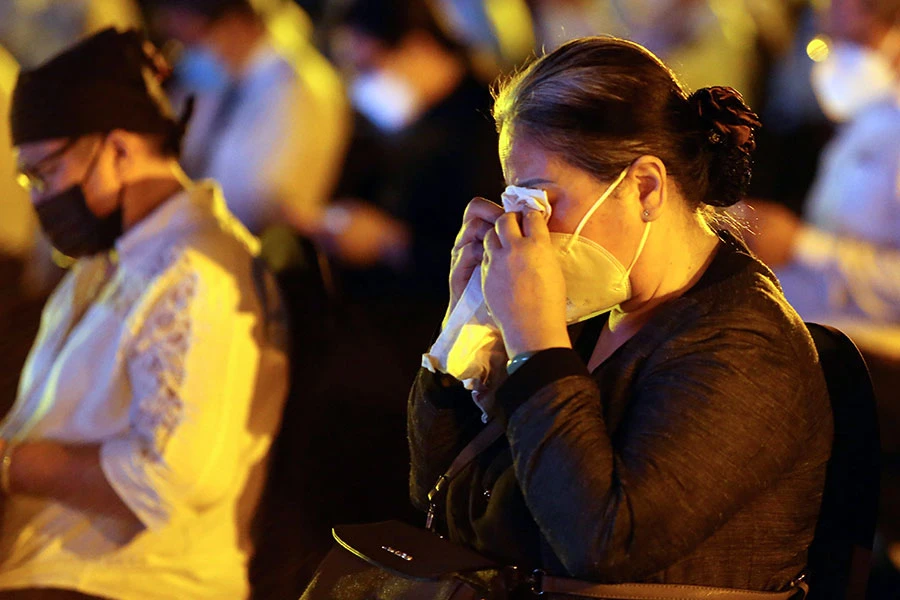 Tại lễ tưởng niệm, các đại biểu đã dành một phút mặc niệm để tưởng nhớ những người đã mất do COVID-19. Rất nhiều người đã rơi lệ, lấy tay lau nước mắt.