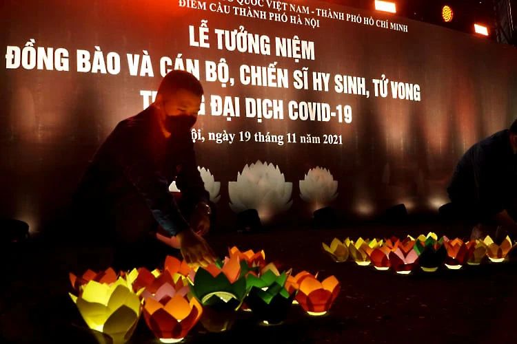 Đúng 20 giờ tối 19-11, Ủy ban Trung ương MTTQ Việt Nam và Thành ủy TP.HCM phối hợp tổ chức lễ tưởng niệm đồng bào tử vong và cán bộ, chiến sĩ hy sinh trong đại dịch COVID-19 tại Hội trường Thống Nhất (135 Nam Kỳ Khởi Nghĩa, quận 1, TP.HCM) và Công viên Thống Nhất (TP Hà Nội).