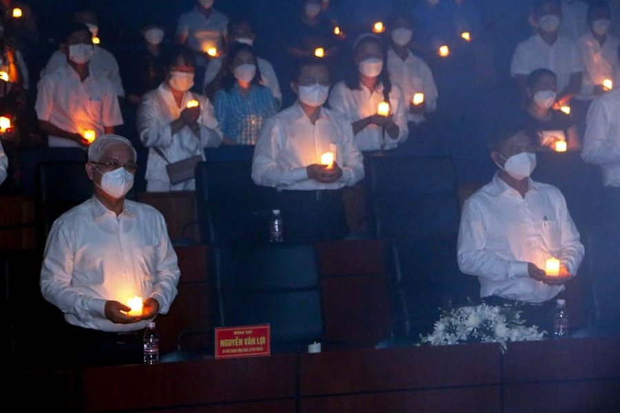 Đúng 20 giờ ngày 19-11, Ủy ban Trung ương MTTQ Việt Nam và Thành ủy, UBND TP.HCM phối hợp tổ chức lễ tưởng niệm đồng bào tử vong và cán bộ, chiến sĩ hy sinh trong đại dịch COVID-19 tại Hội trường Thống Nhất