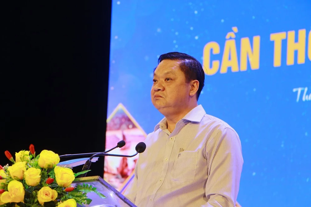 Phó Chủ tịch UBND TP Cần Thơ phát biểu tại đêm văn nghệ. Ảnh: HP