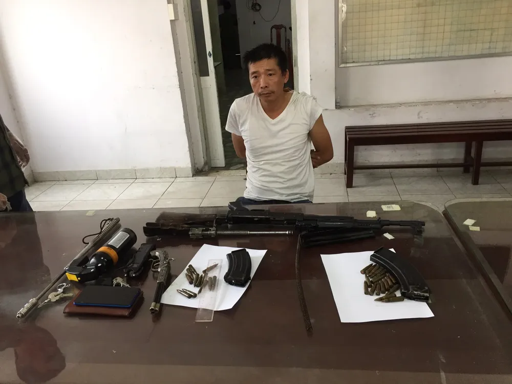Công an sau đó tiến hành khám xét nơi ở của Tuyên tại quận 7 và phát hiện một gói ma túy, dụng cụ chích điện, bình hơi cay, súng cổ…