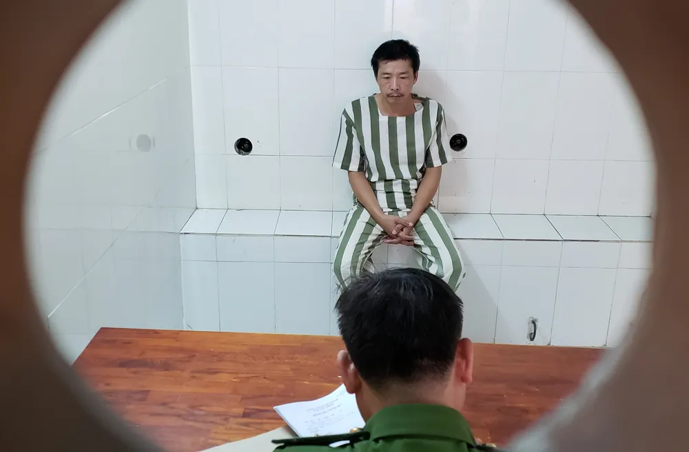 Nguyễn Văn Tuyên tại cơ quan công an. Ảnh: TỰ SANG