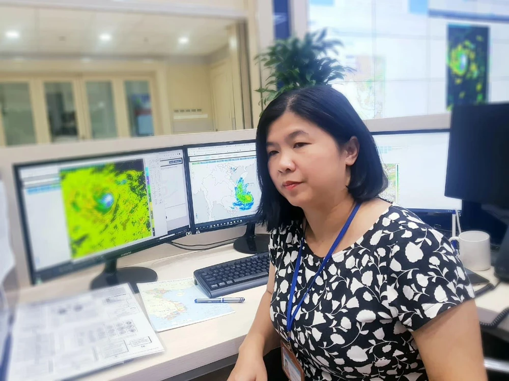 “Cứ theo dõi 10 phút/lần như vậy thì 1 tiếng chúng tôi phải ra một bản tin nhanh về cơn bão, sau 2-3 tiếng chúng tôi lại họp nhóm và ra một bản tin chính thức về cơn bão. Tất cả cuối cùng chỉ mong làm sao để thiệt hại ít nhất” – chị Bình cho biết.
