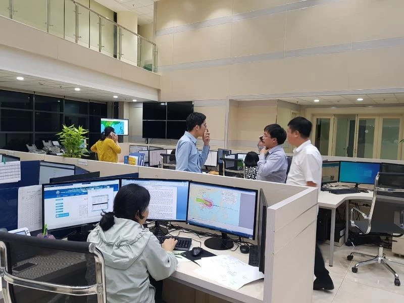 1 giờ sáng ngày 28-10, Tòa nhà của Tổng cục Khí tượng thủy văn quốc gia (số 8 phố Pháo Đài Láng, Hà Nội) vẫn sáng đèn. Tầng 12 của tòa nhà là Trung tâm điều hành tác nghiệp khí tượng thủy văn, bên trong, hàng chục cán bộ, nhân viên khí tượng vẫn đang tập trung theo dõi, phân tích về cơn bão số 9.