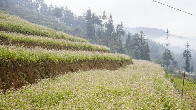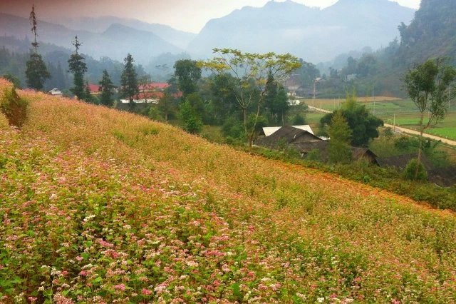 Sắc hồng quyến rũ của hoa tam giác mạch trên những triền đồi
