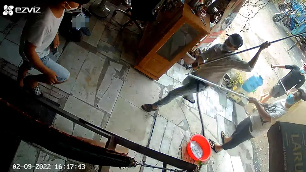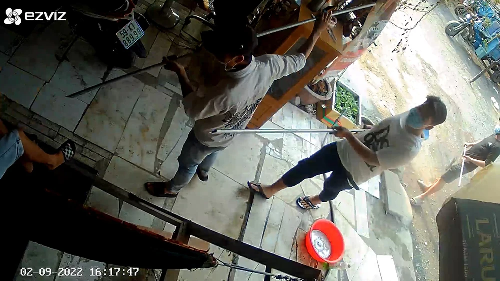 Anh H bị thương ở đầu, chảy máu, phải đưa vào bệnh viện cấp cứu. Theo hình ảnh từ clip camera an ninh, nhóm thanh niên hung hãn tấn công bằng những cây sắt dài chừng 2m.