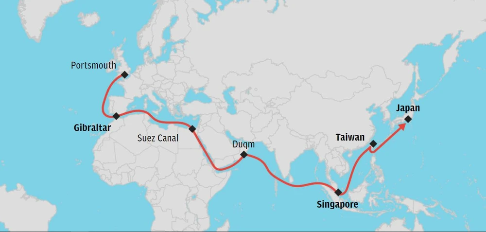 Theo đó, nhóm tác chiến tàu sân bay của Anh sẽ đi qua Biển Đông, một tuyến đường hàng hải quan trọng mà Trung Quốc những năm gần đây đang ngày càng tỏ ra quyết đoán. Tuy nhiên, nhóm tác chiến sẽ không đi qua eo biển Đài Loan, thay vào đó sẽ đi về phía đông và kết thúc chuyến hải trình tại Nhật.
