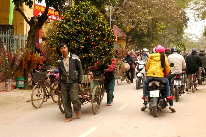 Những người bán hoa đi chân đất kéo xe, áo quần dính đất, khuôn mặt đượm buồn…