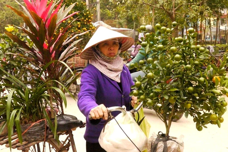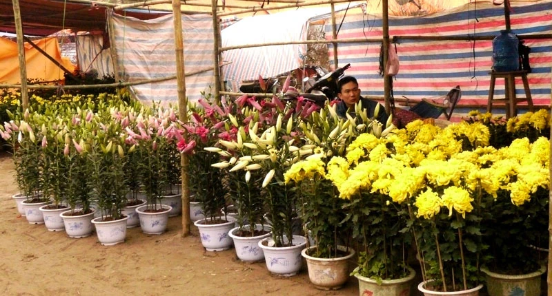 Xung quang khu vực chợ lại khá đông người bán và mua đủ các loại như cây cảnh, hoa và nhiều vật dụng cho ngày Tết rất phong phú.