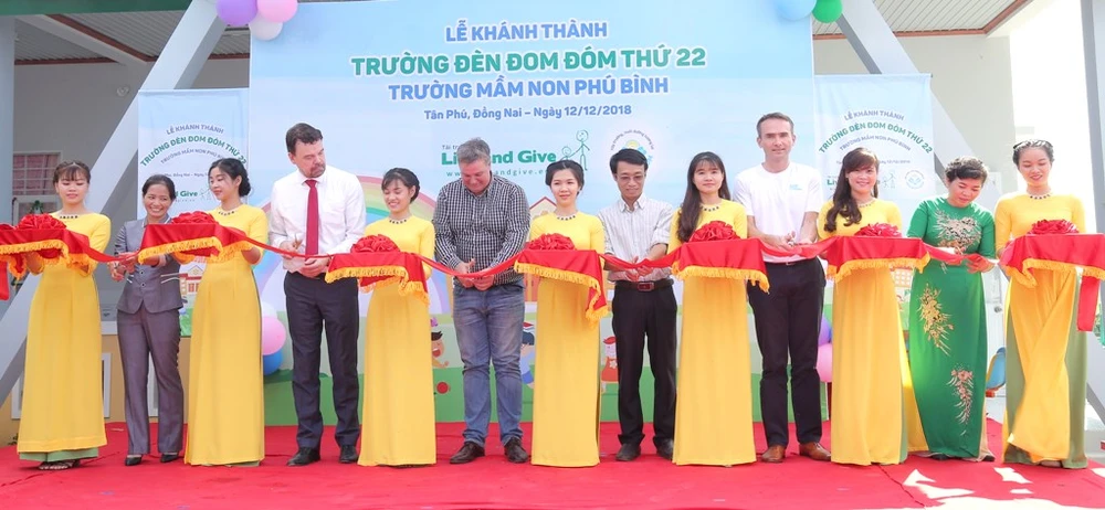 Đây là ngôi trường thứ 22 của chương trình khuyến học Đèn Đom Đóm của Sữa Cô Gái Hà Lan xây dựng. Tham dự lễ có ông Frank De Laat, Phó Tổng lãnh sự Hà Lan tại TP.HCM; ông Jan Peeters, nhà sáng lập Quỹ Live & Give.