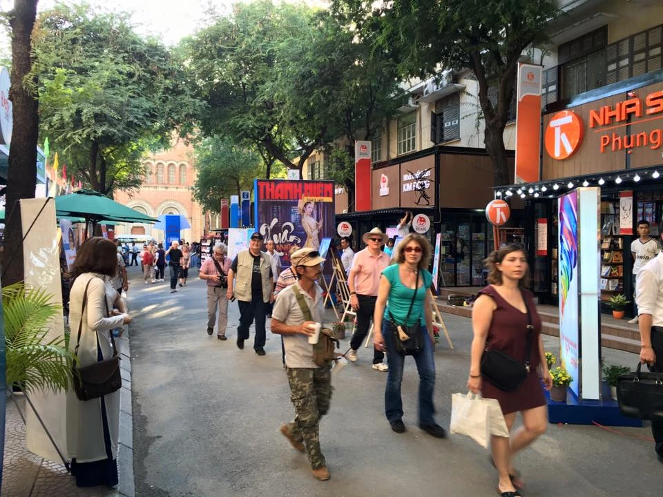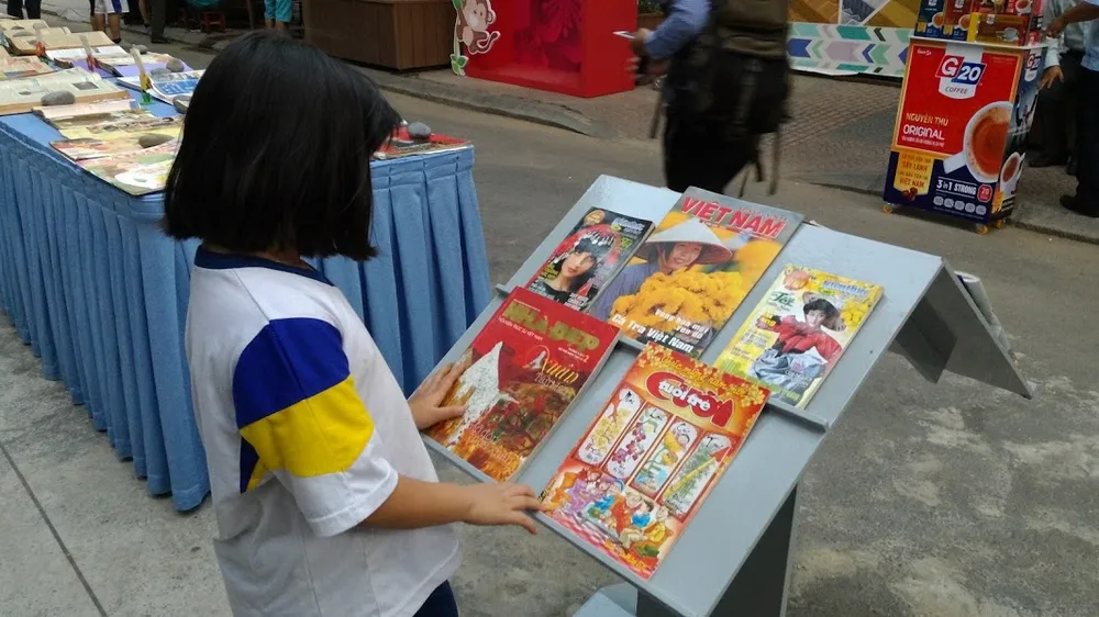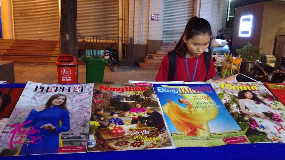 Đông đảo du khách, bạn đọc đến tham quan Đường sách, đường báo Xuân. Ảnh: Minh Nam
