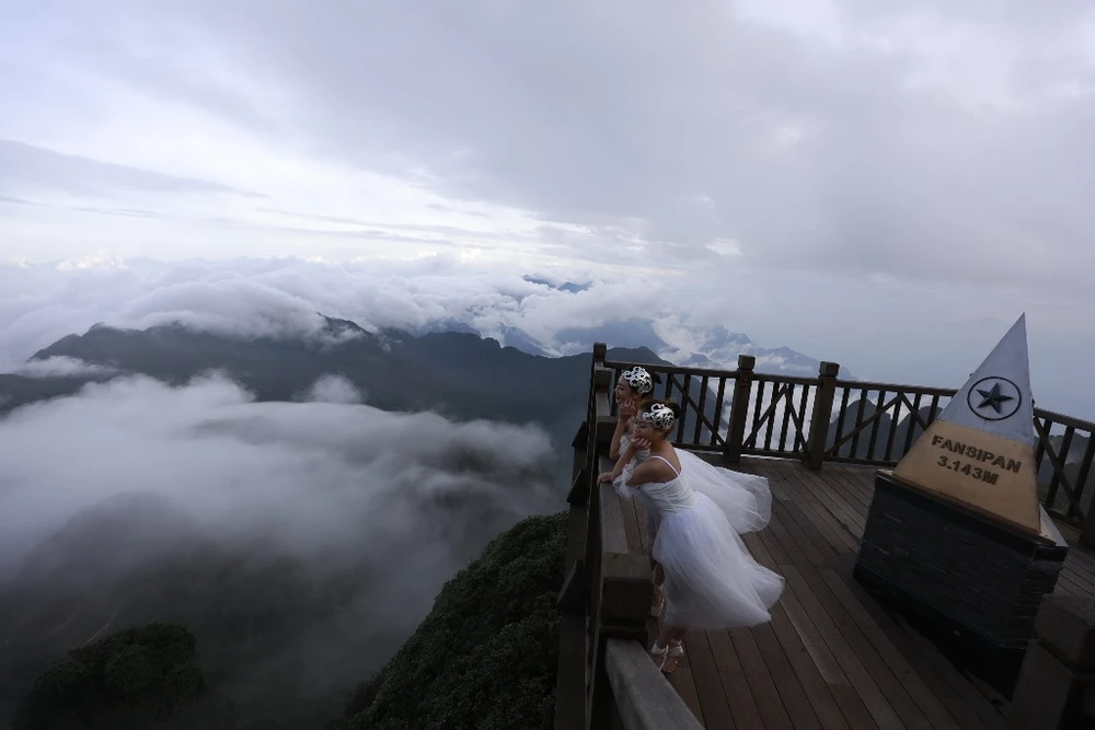 Diệu kỳ nhất là được đứng nơi chóp tam giác ghi dấu mốc 3.143 m chiêm ngưỡng cả biển mây mênh mông vờn trên những đỉnh núi của dãy Hoàng Liên Sơn. Chỉ khi đó, con người mới thấy mình thật nhỏ bé giữa thiên nhiên kỳ diệu.