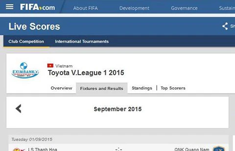 Không biết có phải vì quen với giải V-League cũ và logo cũ (Eximbank) hay không mà khi cập nhật giải mới 2015 do Toyota là nhà tài trợ chính thì FIFA vẫn dùng nhà tài trợ Eximbank ở một góc trang trọng.