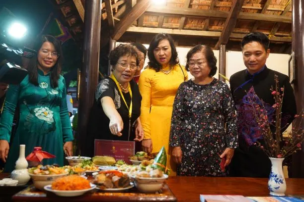 Nguyên Phó chủ tịch nước Trương Mỹ Hoa cùng lãnh đạo Bộ VHTT&DL, Hiệp hội Văn hoá ẩm thực Việt Nam tham quan không gian tết miền Trung.