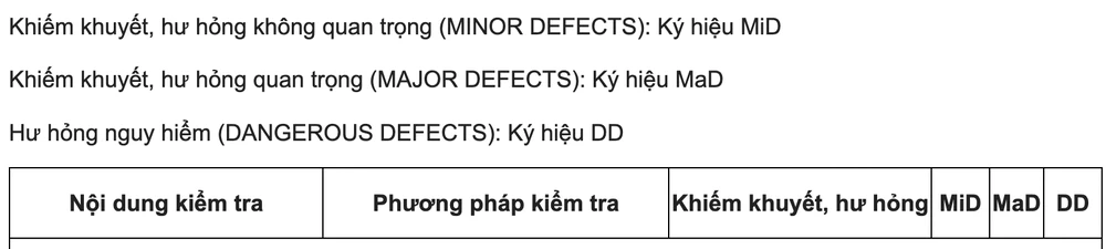 Trong đó, các khiếm khuyết, hư hỏng của xe cơ giới trong kiểm định được phân thành 3 mức như sau: