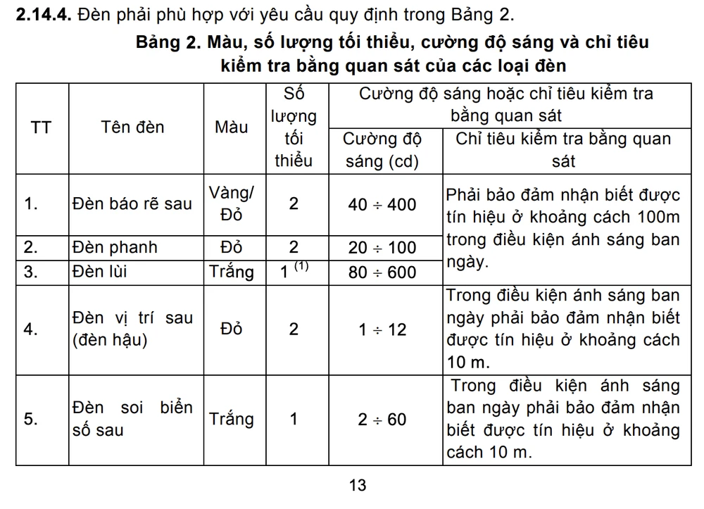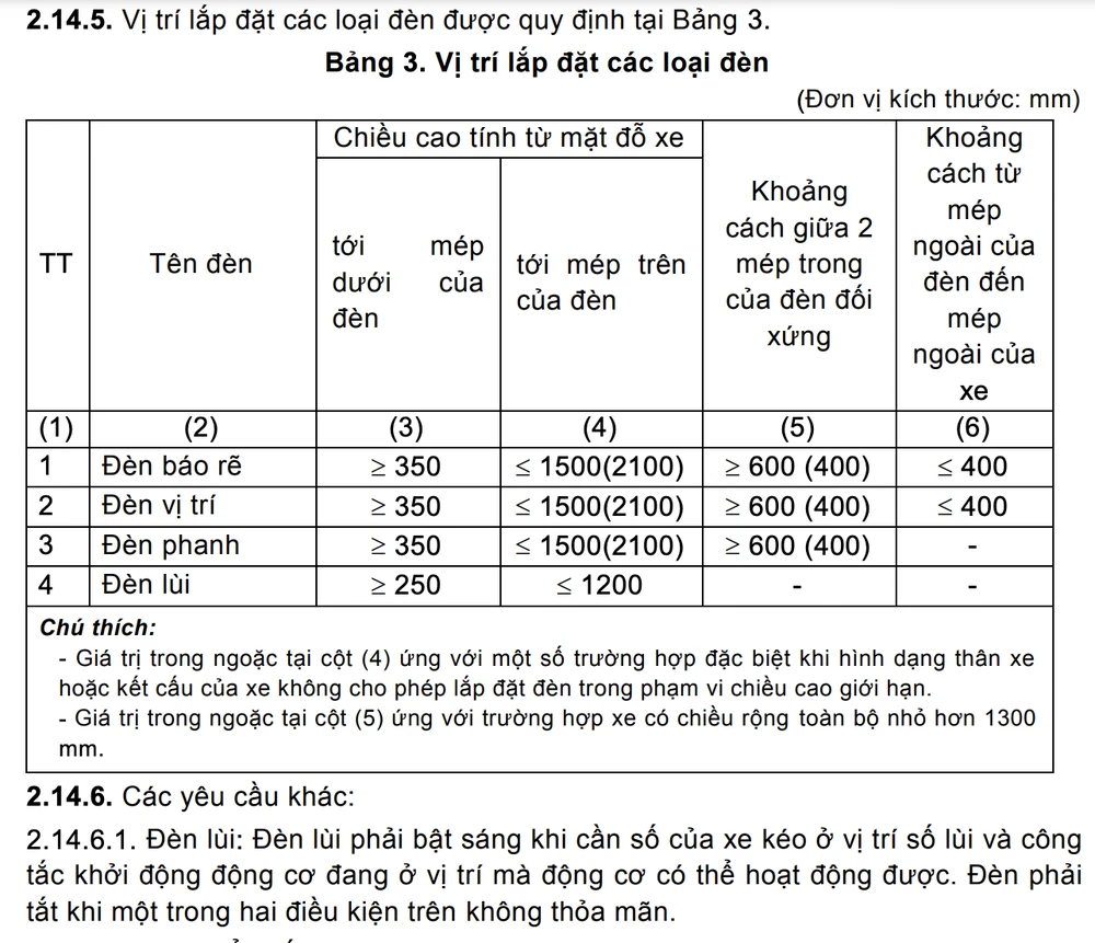 Theo tìm hiểu của PV, quy chuẩn về đèn lùi được quy định tại QCVN 11:2015 Bộ GTVT và Thông tư 16/2021 của Bộ GTVT.