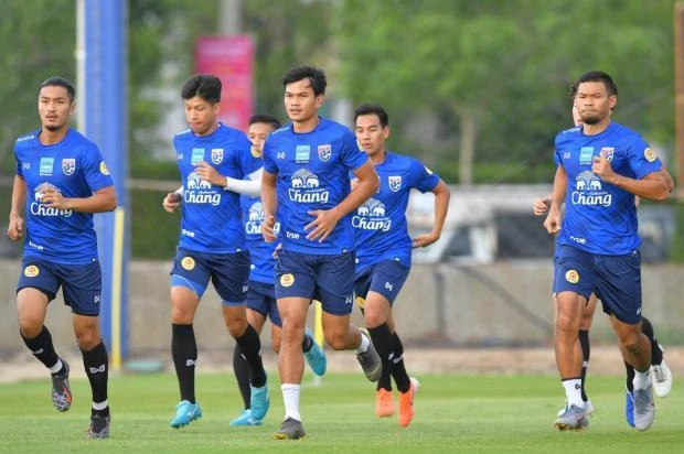 Tuyển Thái Lan trong buổi tập chiều ngày 1-6.