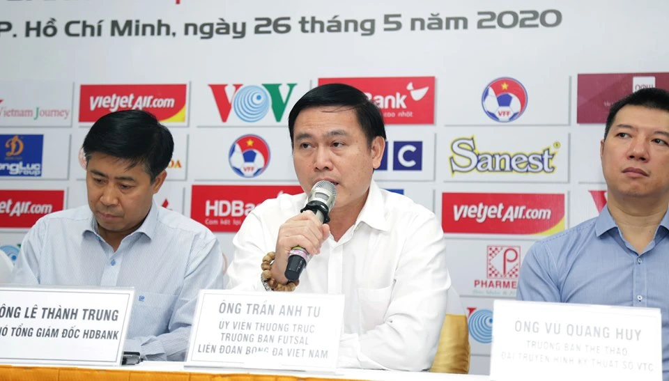 Ông Trần Anh Tú, Trưởng ban Futsal VFF trả lời báo chí. Ảnh: NGỌC TRÂM