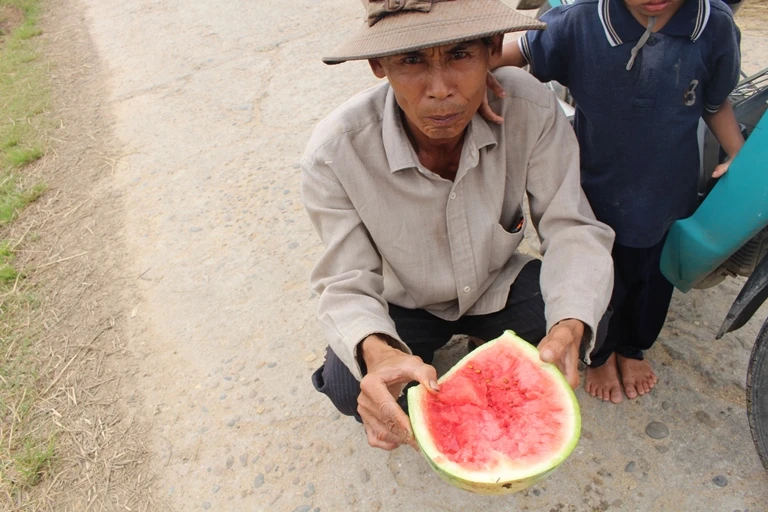 Thê thảm hơn là trường hợp của ông Trương Quốc Thơ (54 tuổi, ngụ cùng thôn Hội Đức) với hơn bốn sào dưa nhưng bây giờ gần như trắng tay. Chia sẻ với chúng tôi, ông Thơ cho biết ông trồng dưa hấu đã được hơn chục năm nhưng chưa có năm nào giá dưa lại tồi tệ như thế này.