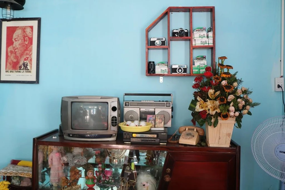 Các đồ vật trang trí quán như tivi, bàn ghế, xe máy hay tủ sách đều được chủ quán tận dụng từ những món đồ cũ nhà mình.