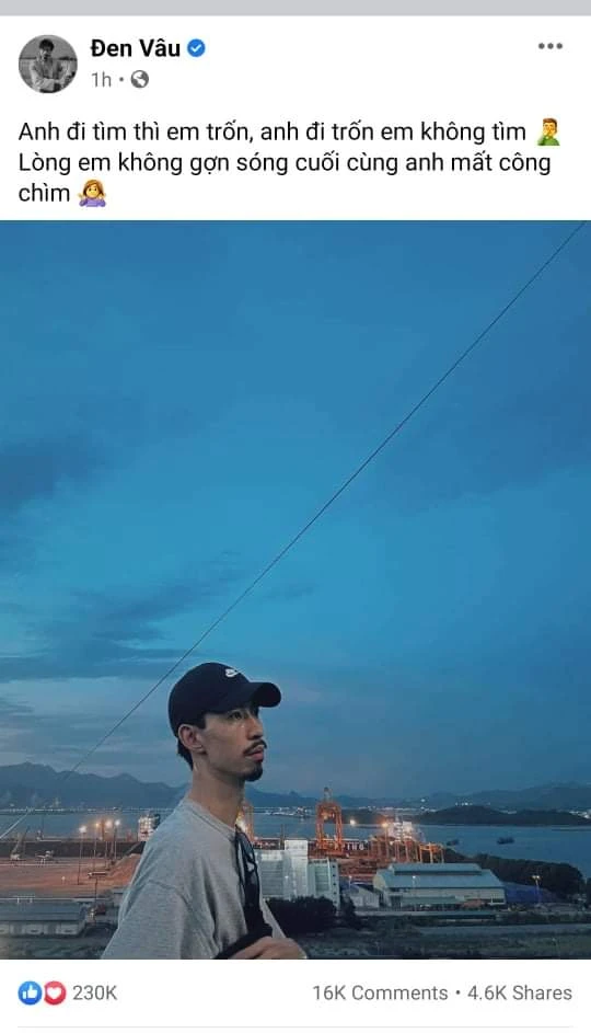Đen Vâu đăng hai câu rap liên quan đến sóng. Ảnh chụp màn hình