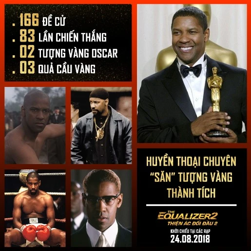 Trong sự nghiệp của Denzel Washington, anh từng được gọi tên 166 lần trong danh sách đề cử của các giải thưởng điện ảnh uy tín, trong đó có 83 lần chiến thắng. Denzel là gương mặt thân quen với Viện Hàn lâm làn điện ảnh. Trong suốt 4 thập niên qua, anh từng 8 lần nhận đề cử Oscar và 2 lần chạm đến tượng vàng một cách không thể thuyết phục hơn. Thành tích của tài tử tại lễ trao giải Quả cầu vàng còn nhiều hơn thế, với con số đề cử lên đến 10 và số lần nhận giải là 3.