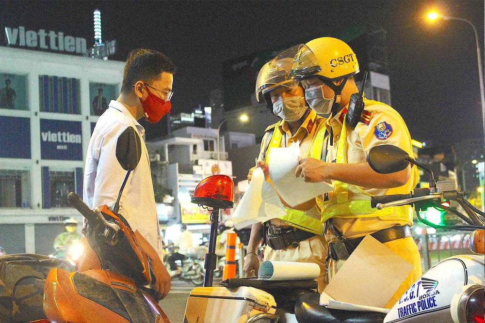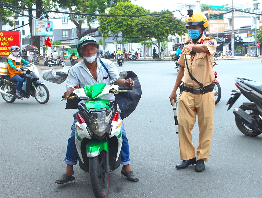 Từ ngày 1-6, Phòng CSGT (PC08) Công an TP.HCM đã ra quân kiểm soát, xử lý người tham gia giao thông vi phạm các quy định về phòng chống dịch trong lĩnh vực y tế, theo Nghị định 117/2020. Trong đó có việc xử phạt tài xế không đeo khẩu trang nơi công cộng.