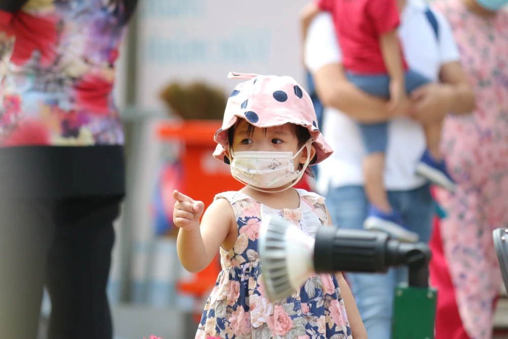 Các em bé cũng được trang bị khẩu trang đầy đủ.