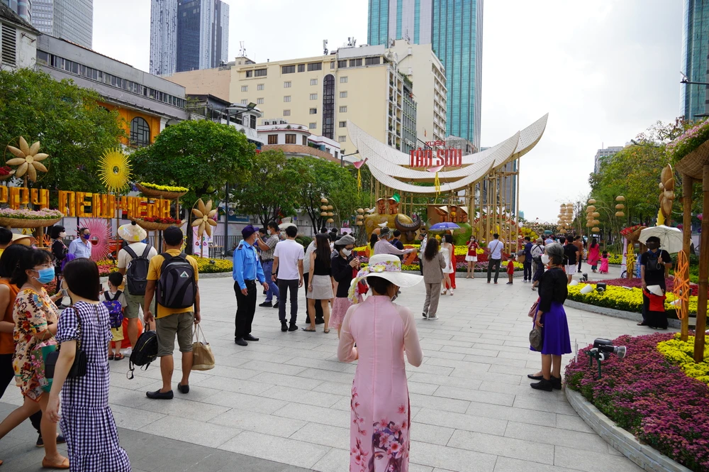 Theo chỉ đạo của UBND TP.HCM, đường hoa Nguyễn Huệ bắt đầu mở cửa đón khách từ 8h đến 17 hằng ngày bắt đầu từ hôm nay (9-2).
