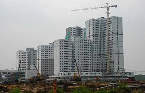 Thi công một dự án nhà ở tại khu đô thị mới Thủ Thiêm. Ảnh: HTD