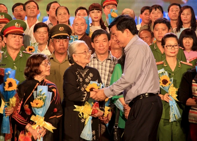 Uỷ viên Bộ Chính trị, Bí thư Thành uỷ TP.HCM Đinh La Thăng thăm hỏi những tấm gương tiêu biểu “Tỏa sáng giữa đời thường”. Ảnh: Tạp chí giao thông
