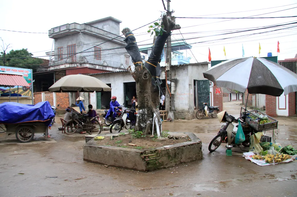 Đây là hình ảnh cây đa có tuổi đời ngoài 20 năm được trồng ở khu vực chợ quê của xã. Theo người dân nơi đây, cây đa này trước kia tỏa bóng mát, che nắng mưa cho bà con, không ảnh hưởng gì đến giao thông nhưng cũng bị chính quyền đốn hạ hết cành nhánh. Điều này khiến người dân khá bức xúc.