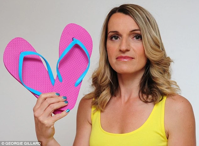 Cindy, 44 tuổi, quản lý thương mại ở Isleworth, Middlesex đã mang dép xỏ ngón hầu như mọi ngày, mọi lúc. Và cô bắt đầu bị đau bàn chân từ 2011. Cơn đau dữ dội trong lòng bàn chân cô bắt đầu từ gót mà chạy dọc mu bàn chân. Mỗi sáng, cô đau đến nỗi khó có thể đứng dậy. Sau 10 phút, cơn đau dịu lại. Nhưng nếu cô đứng quá lâu, cơn đau sẽ trở lại.