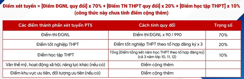 Trong đó, xét tuyển tổng hợp bao gồm các tiêu chí về học lực (kết quả kỳ thi đánh giá năng lực của ĐH Quốc gia TP.HCM, kết quả kỳ thi tốt nghiệp THPT 2022, kết quả quá trình học tập THPT), năng lực khác và hoạt động xã hội với 75 - 90% tổng chỉ tiêu.