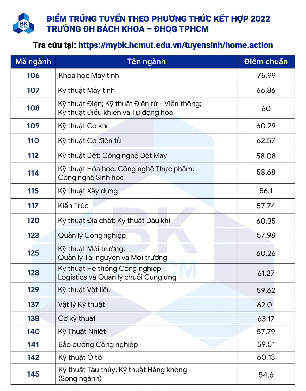 Chiều 15-9, Trường Đại học Bách Khoa (ĐH Quốc gia TP.HCM) đã công bố kết quả trúng tuyển đại học hệ chính quy năm 2022 theo phương thức xét tuyển kết hợp với điểm kỳ thi tốt nghiệp THPT.