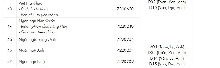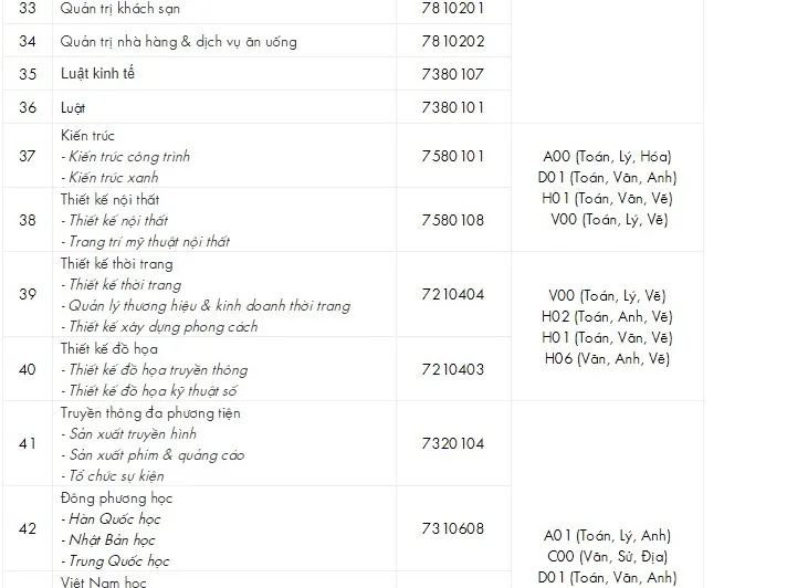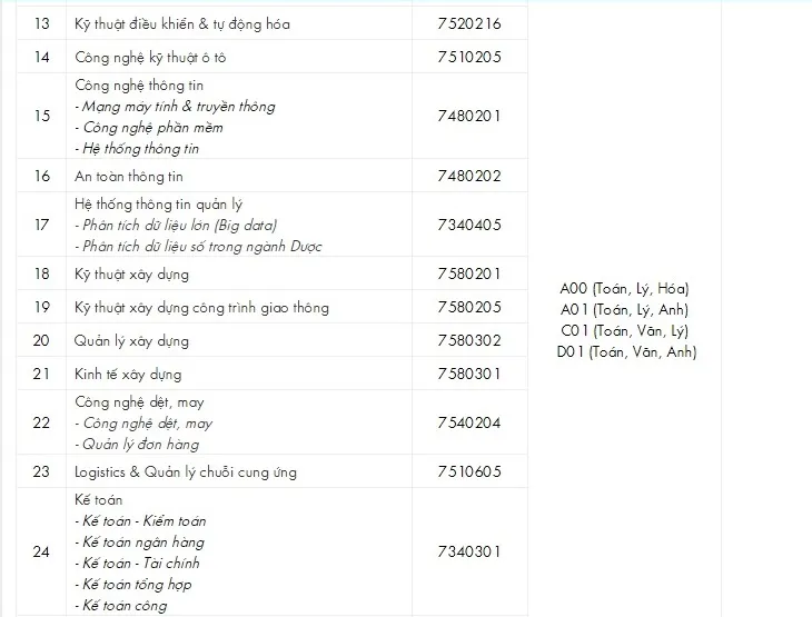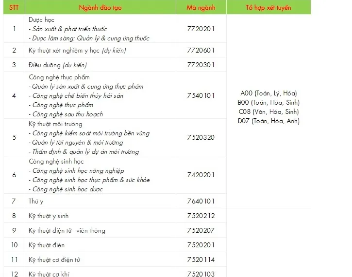 Thông tin tuyển sinh từng ngành cụ thể như sau: