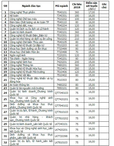 Cạnh đó, chỉ tiêu đào tạo có điều chỉnh tăng cho các ngành Công nghệ thực phẩm, Công nghệ thông tin, Quản trị kinh doanh, quản trị nhà hàng, Quản trị du lịch, Điện – điện tử với mức tăng trên 50 chỉ tiêu cho mỗi ngành. Các ngành giảm là Công nghệ vật liệu, kỹ thuật môi trường, quản lý tài nguyên và môi trường… Việc điều chỉnh chỉ tiêu dựa trên cơ sở số lượng thí sinh đăng ký nguyện vọng và tổng chi tiêu toàn trường cũng như chỉ tiêu của nhóm ngành là không thay đổi.