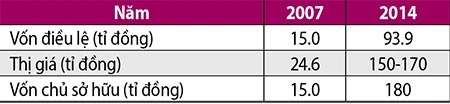 Giả sử trong bảy năm liên tục (2007-2013), chi phí sử dụng vốn (đã bao gồm rủi ro) là 20% thì đến 2013, số vốn này lên đến 87 tỉ đồng.
