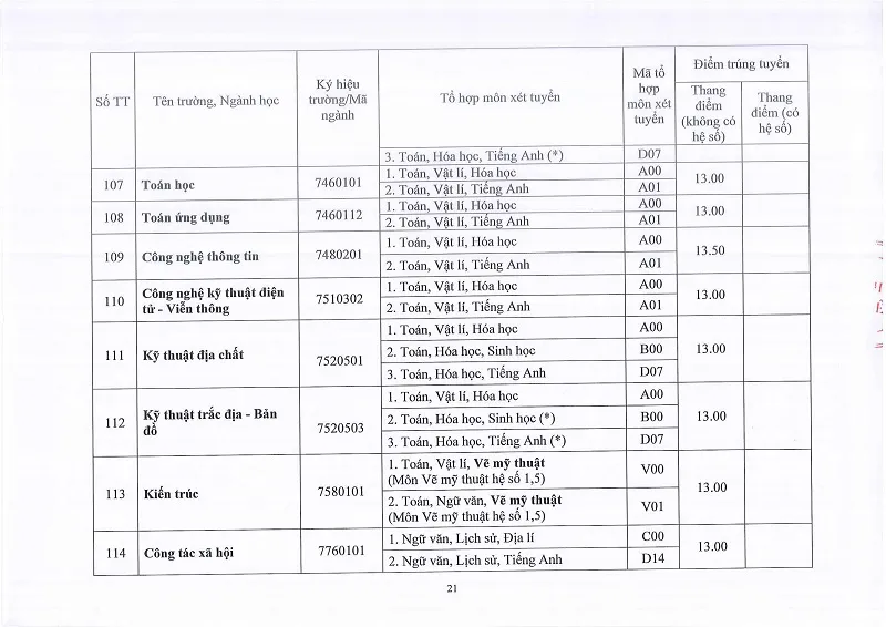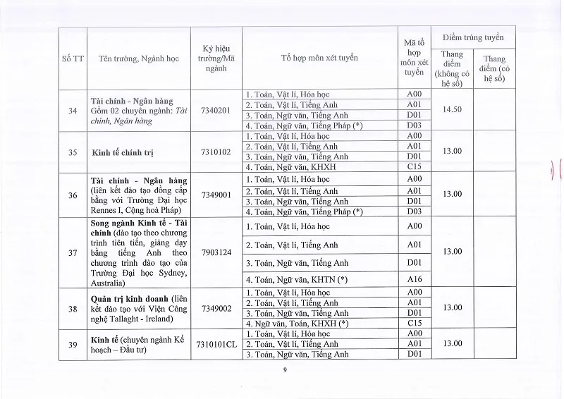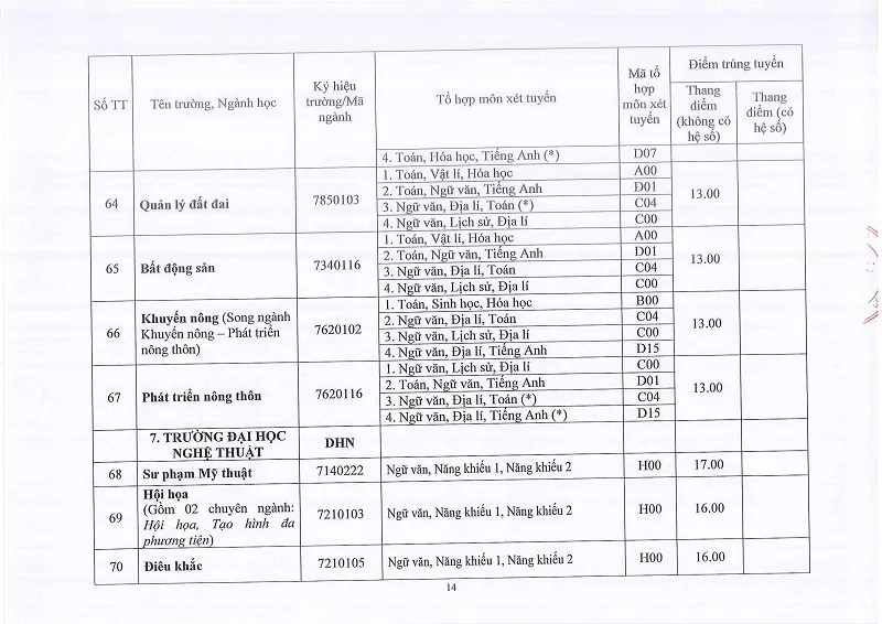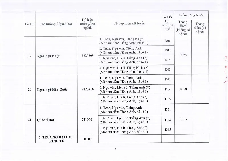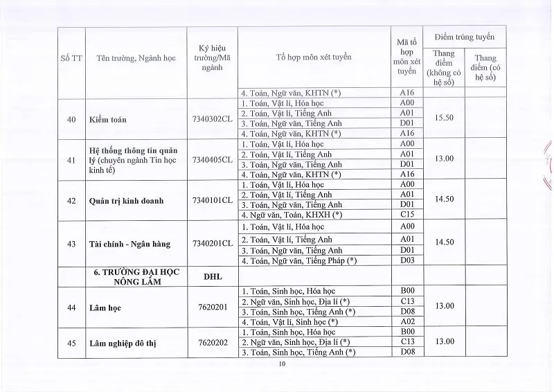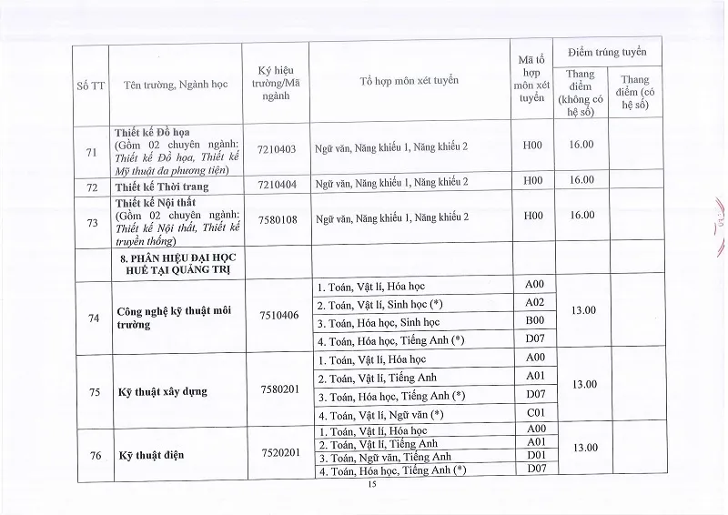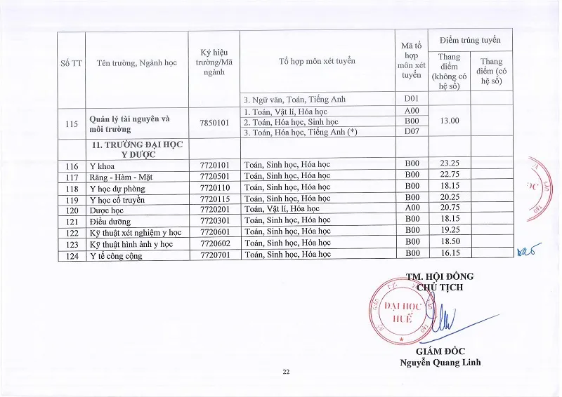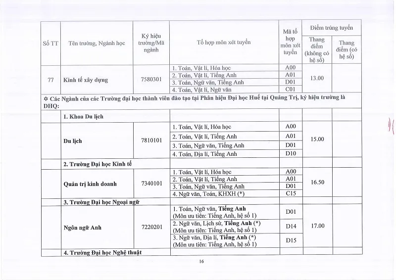 Trong đó, có rất nhiều ngành có điểm chuẩn bằng điểm sàn. Cụ thể, Trường ĐH Kinh tế Huế có 11 ngành, Trường ĐH Nông Lâm có 21 ngành, Trường ĐH Khoa học có 22 ngành...