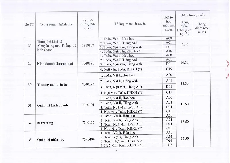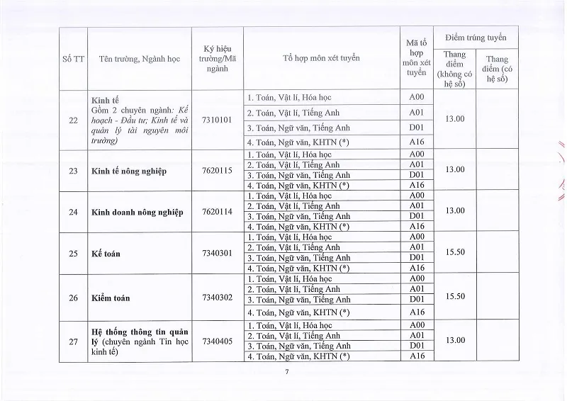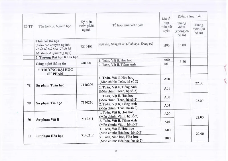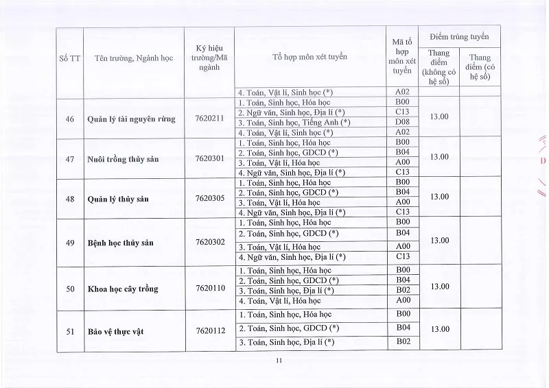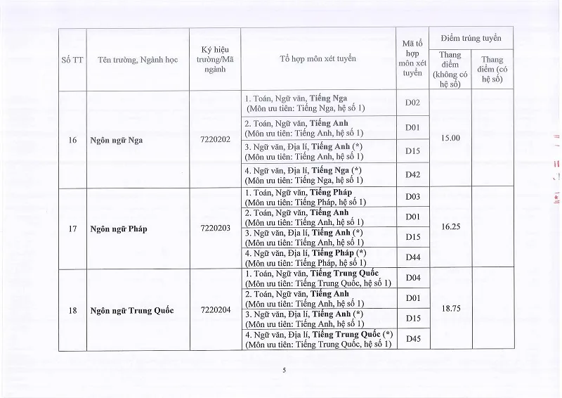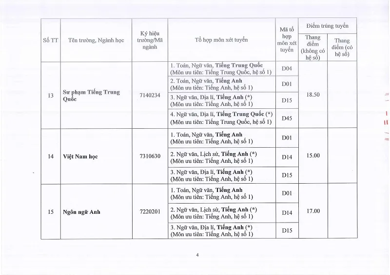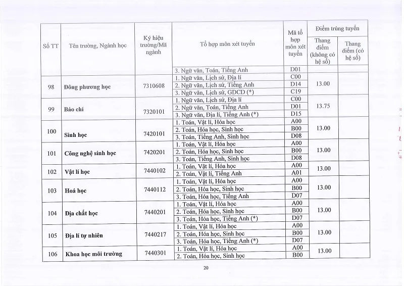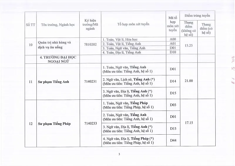 Trong đó, có rất nhiều ngành có điểm chuẩn bằng điểm sàn. Cụ thể, Trường ĐH Kinh tế Huế có 11 ngành, Trường ĐH Nông Lâm có 21 ngành, Trường ĐH Khoa học có 22 ngành...